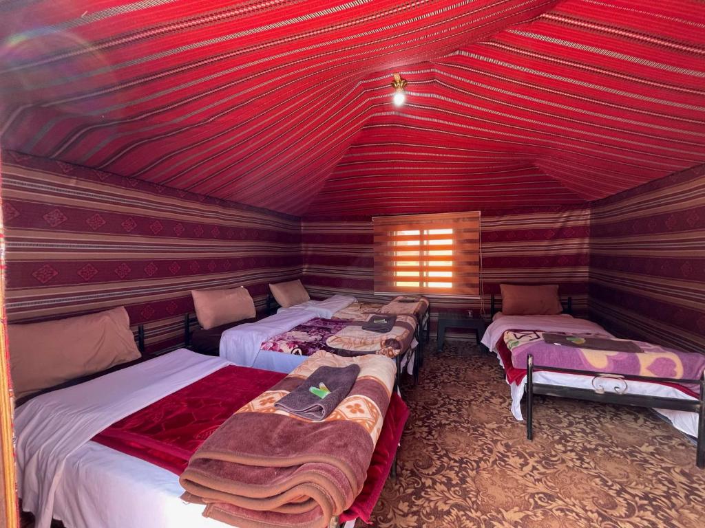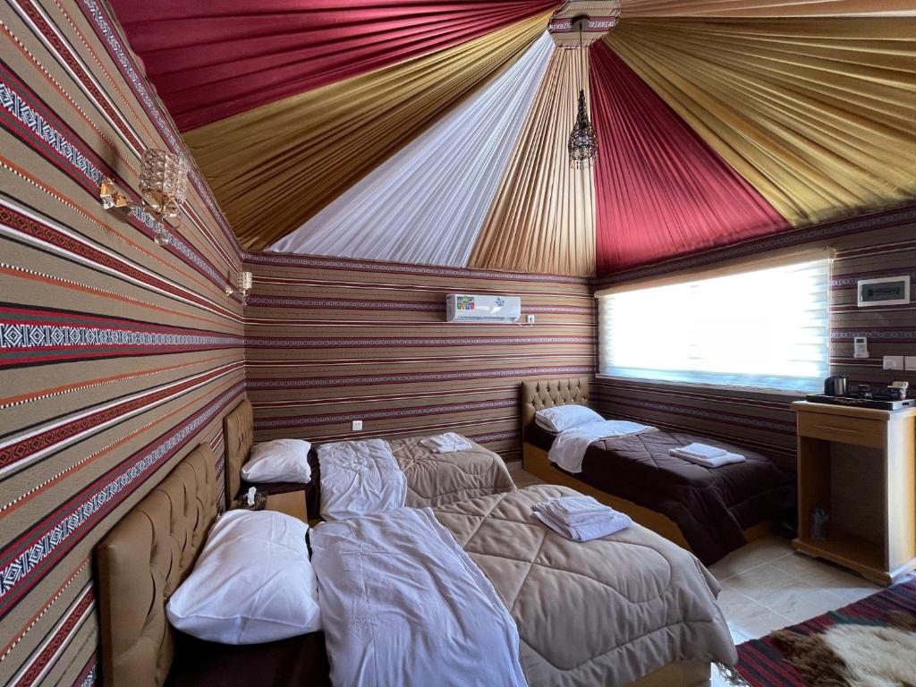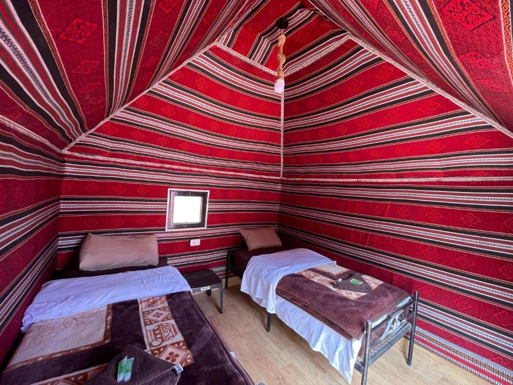 "The camp has a beautiful view of the wadi rum area and desert. The dinner is very generous and really yummy cooking. Make sure to book a 4x4 tour with the property as the drivers are the best. Our driver Aziz was very lovely!"
